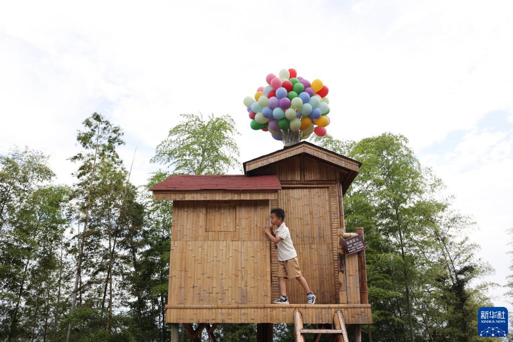 一個(gè)小朋友在四川省宜賓市蜀南竹海游玩(6月30日攝)。