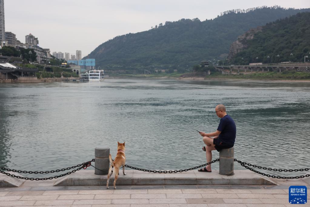 一位市民在四川省宜賓市三江口江邊休息(6月28日攝)。