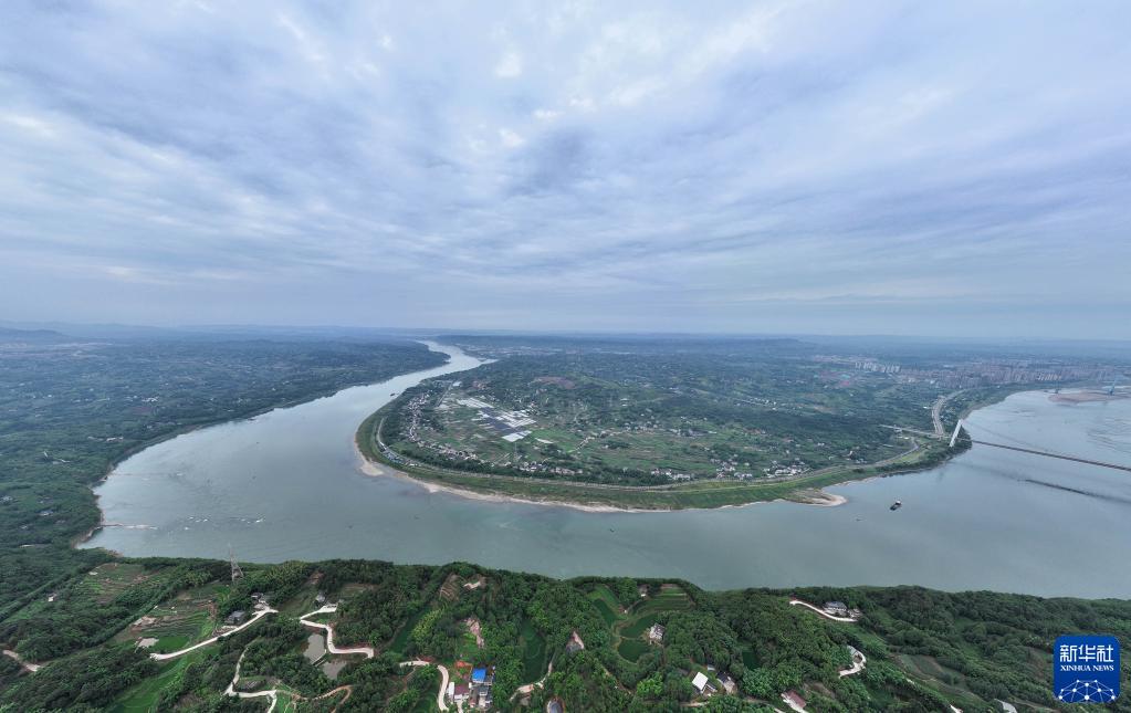 這是6月29日在四川省宜賓市南溪區長(cháng)江邊拍攝的長(cháng)江村(無(wú)人機照片)。這里的南溪·長(cháng)江第一灣、長(cháng)江濕地等水域景觀(guān)成為該村發(fā)展農旅融合的基礎。