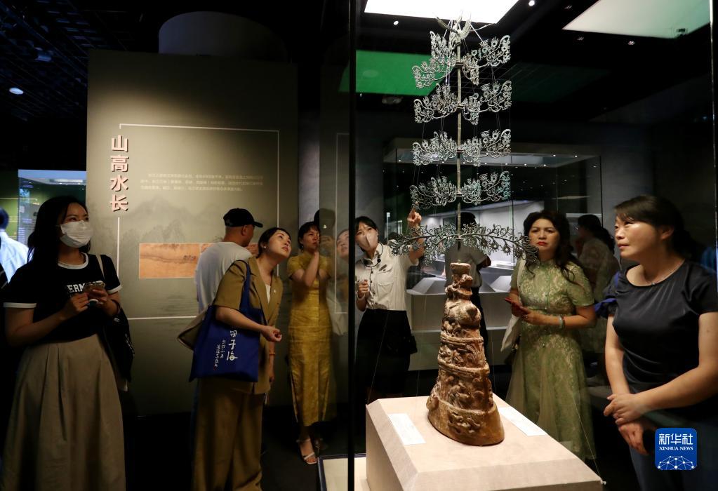 7月10日,參觀(guān)者在東漢搖錢(qián)樹(shù)展柜前駐足觀(guān)看。