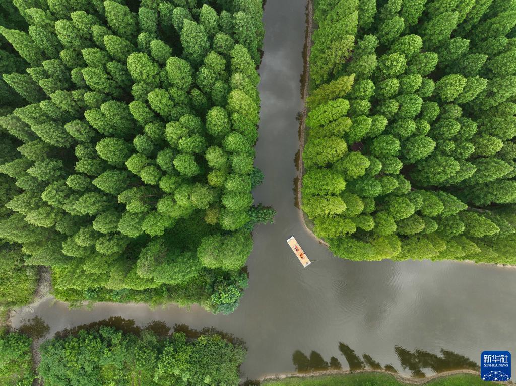 位于江蘇東臺的黃海國家森林公園景色(7月10日攝,無(wú)人機照片)。