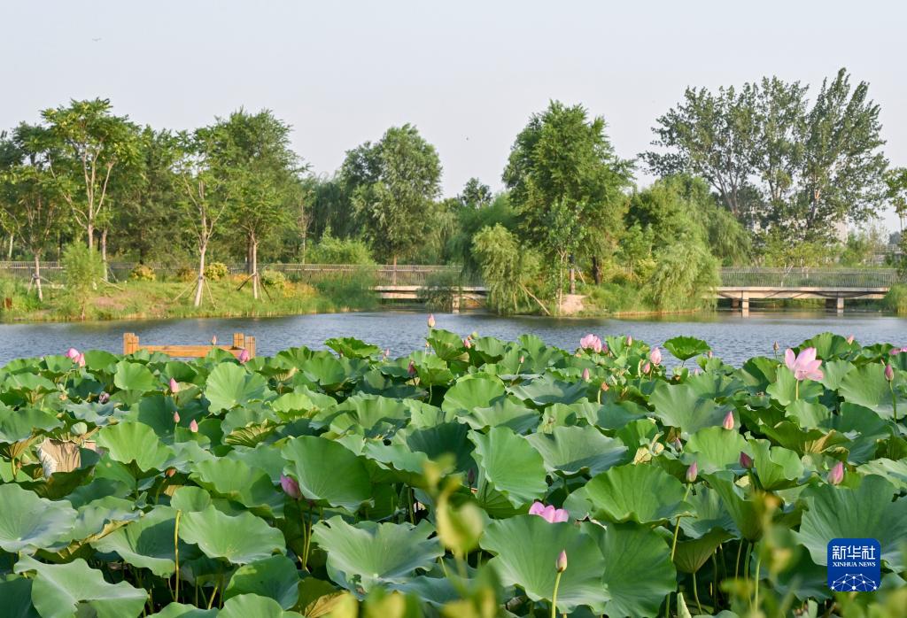 這是7月10日拍攝的北京南六環(huán)附近新鳳河北岸的安南濕地環(huán)保主題公園。