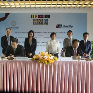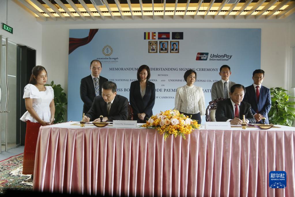 中國銀聯(lián)子公司銀聯(lián)國際與柬埔寨央行10日在金邊簽署合作備忘錄,約定推動(dòng)跨境二維碼業(yè)務(wù)互聯(lián)互通,雙向服務(wù)中柬兩國居民跨境移動(dòng)支付需求。新華社發(fā)(批隆攝)