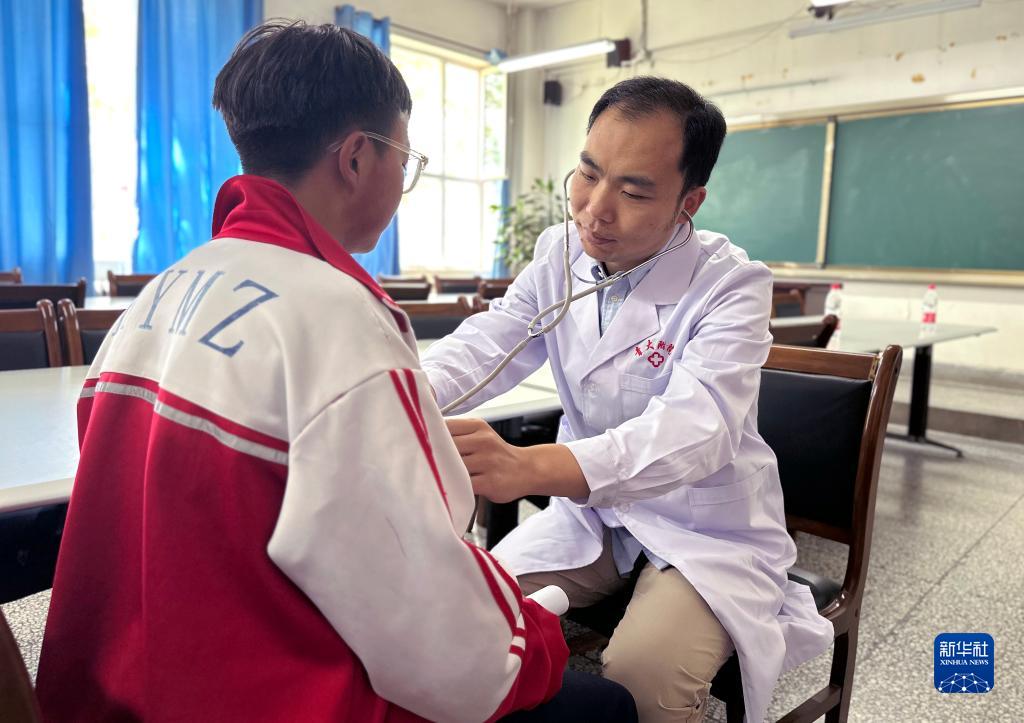 7月7日,北京協(xié)和醫院醫生在青海省海北藏族自治州海晏縣寄宿制民族中學(xué)為學(xué)生做檢查。