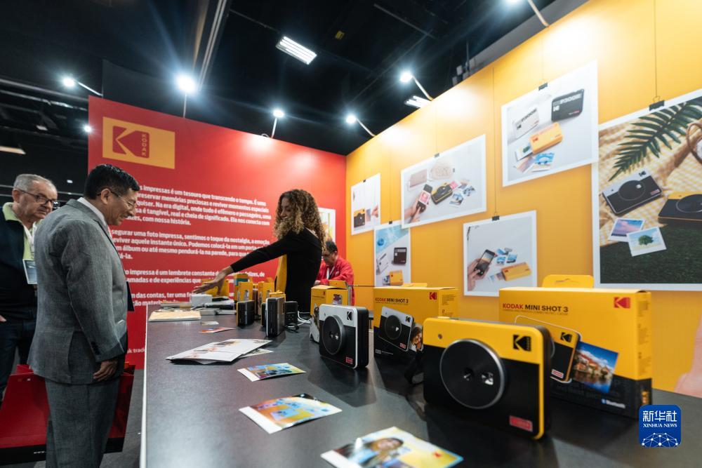 7月10日,在巴西圣保羅舉行的國際消費類(lèi)電子及家用電器產(chǎn)品展覽會(huì )上,參觀(guān)者在柯達公司展臺了解即時(shí)成像相機。