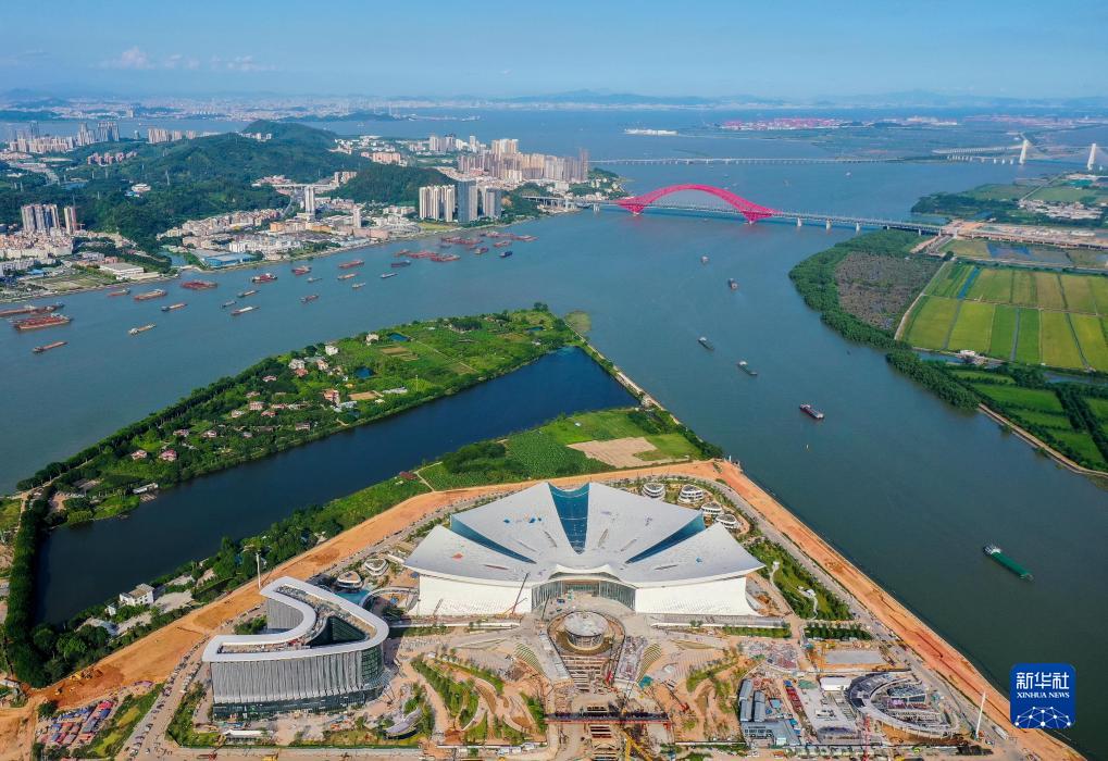 空中俯瞰位于廣州市南沙新區橫瀝島尖的國際金融論壇(IFF)永久會(huì )址,宛如迎風(fēng)綻放的木棉花(無(wú)人機照片,7月10日攝)。