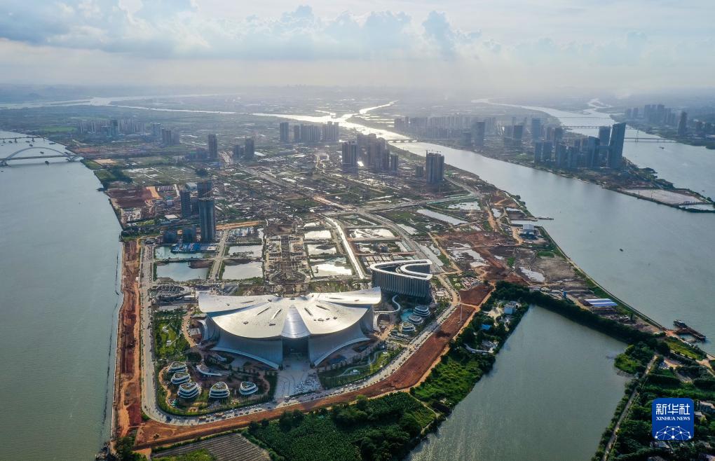 空中俯瞰位于廣州市南沙新區橫瀝島尖的國際金融論壇(IFF)永久會(huì )址,宛如迎風(fēng)綻放的木棉花(無(wú)人機照片,7月10日攝)。