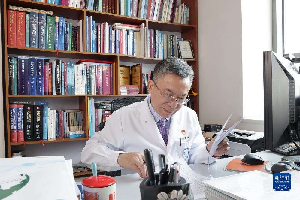 7月3日,黃曉軍在北京大學(xué)人民醫院辦公室內工作。