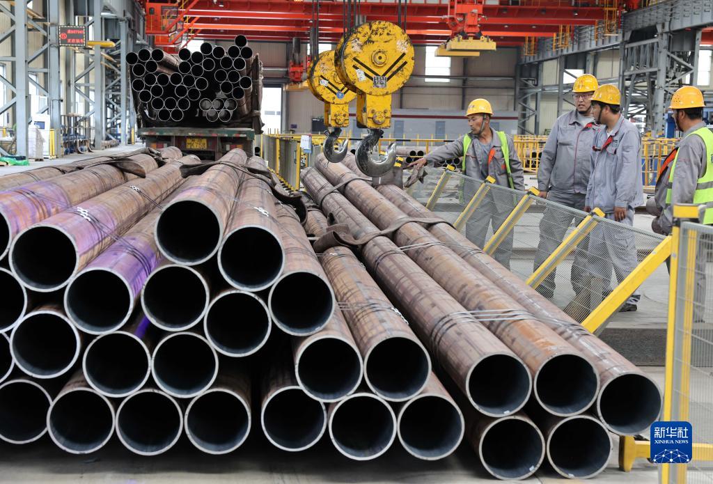 7月11日,在承德市鷹手營(yíng)子礦區一家無(wú)縫鋼管生產(chǎn)企業(yè),工作人員在進(jìn)行裝車(chē)前準備工作。