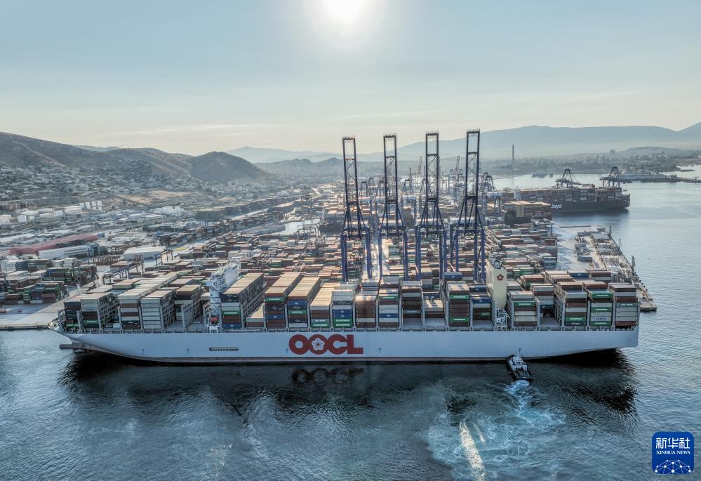 7月10日,“東方比雷埃夫斯”號大型集裝箱船抵達希臘最大港口比雷埃夫斯。