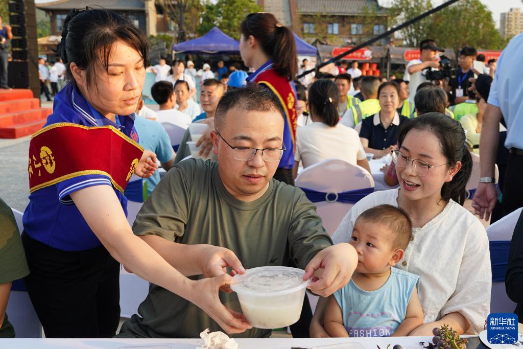 當日是初伏首日,在安徽省宿州市蕭縣,一場(chǎng)“千人喝羊湯”活動(dòng)在當地水墨圣泉古鎮廣場(chǎng)舉行。蕭縣素有入伏吃羊肉、喝羊湯的習俗,并形成獨具特色的伏羊節。