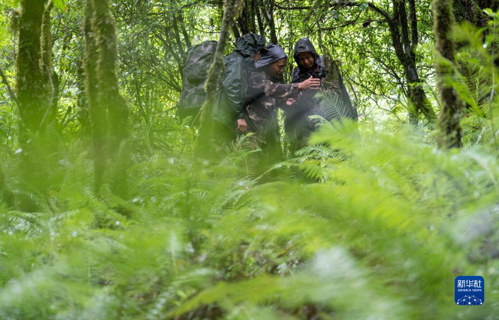 7月9日,巡護隊員在高黎貢山國家級自然保護區查看紅外相機。新華社記者 費茂華 攝