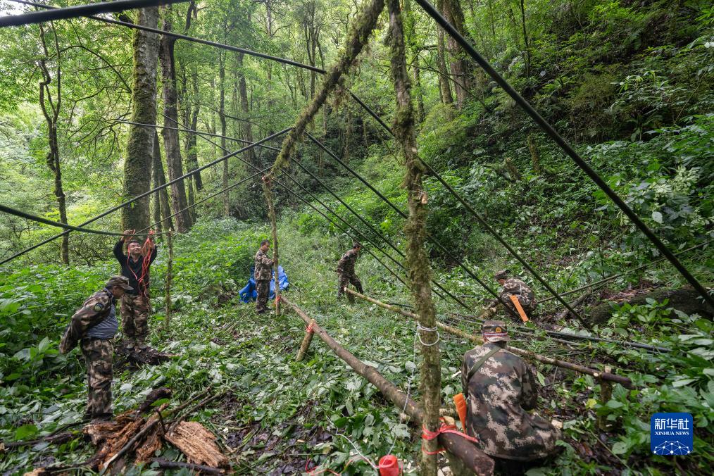 7月8日,巡護隊員在高黎貢山國家自然保護區搭棚子。新華社記者 費茂華 攝