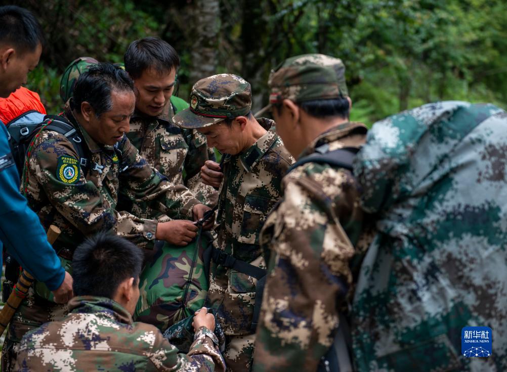7月8日,在高黎貢山國家級自然保護區,巡護隊員在進(jìn)山前整理背包。新華社記者 徐嘉懿 攝