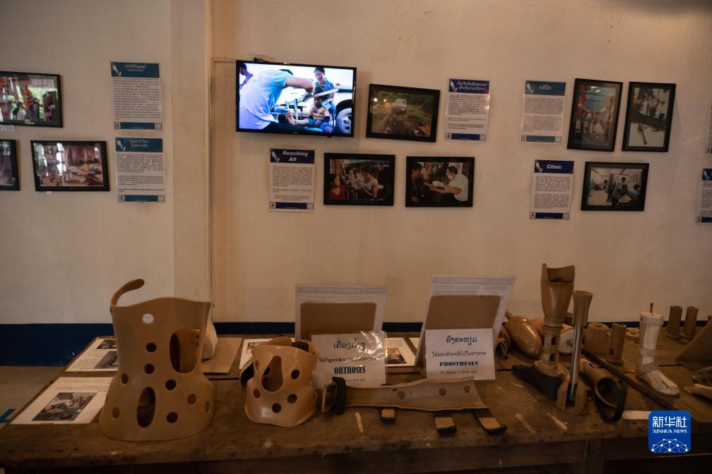 這是7月11日拍攝的老撾首都萬(wàn)象“義肢與矯形合作事業(yè)”展館里展示的未爆彈受害者使用過(guò)的義肢與矯形器等。