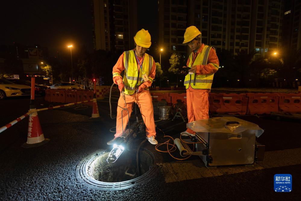 在成都市高新區天府二街,工作人員正將一臺管道檢測機器人放入排水管道里(6月16日攝)。管道檢測機器人搭載高清防水攝像鏡頭和照明設備,能全方位觀(guān)察到管道內部的各個(gè)細節部位。它讓排水管道排查不再需要工作人員下井,安全系數大大提升。新華社記者 江宏景攝