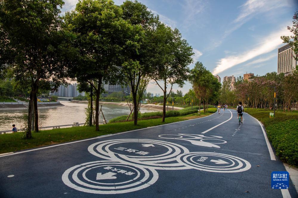 這是錦江邊一段綠道(2022年8月20日攝)。都江堰至黃龍溪220公里錦江綠道串聯(lián)沿線(xiàn)23個(gè)公園和12處景區。新華社發(fā)