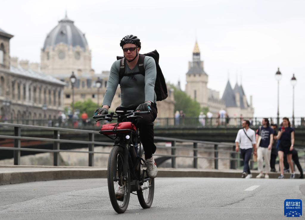 這是一名男子騎車(chē)經(jīng)過(guò)法國巴黎塞納河邊(6月28日攝)。