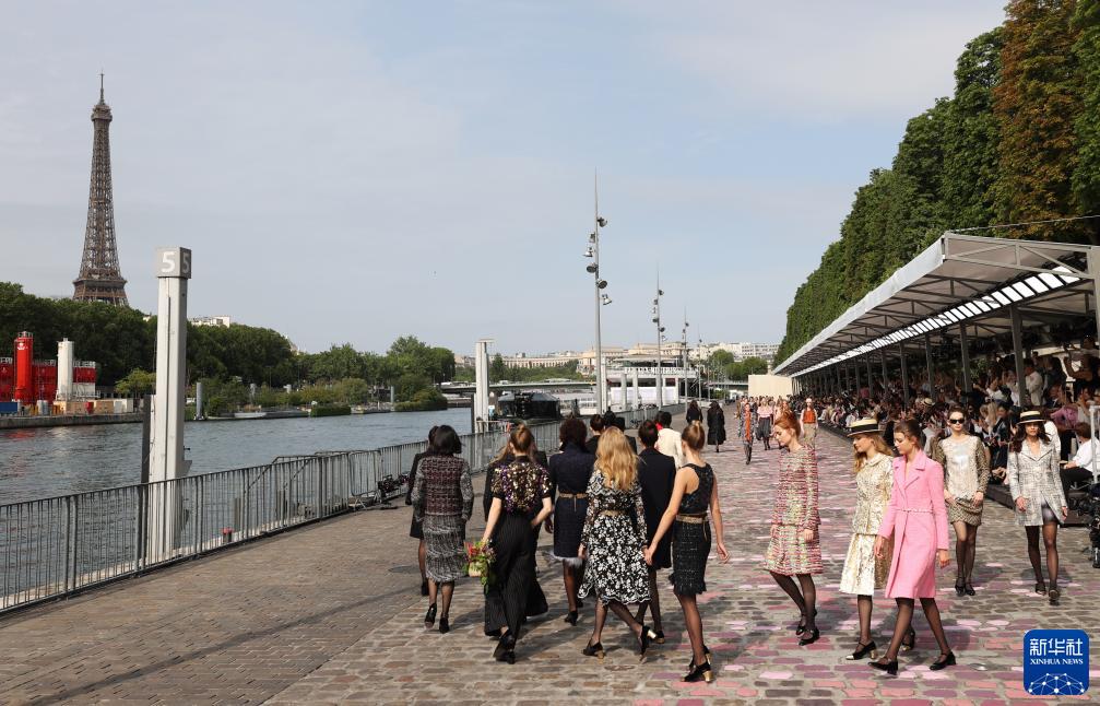 這是在法國巴黎塞納河邊拍攝的法國品牌香奈兒時(shí)裝秀(7月4日攝)。