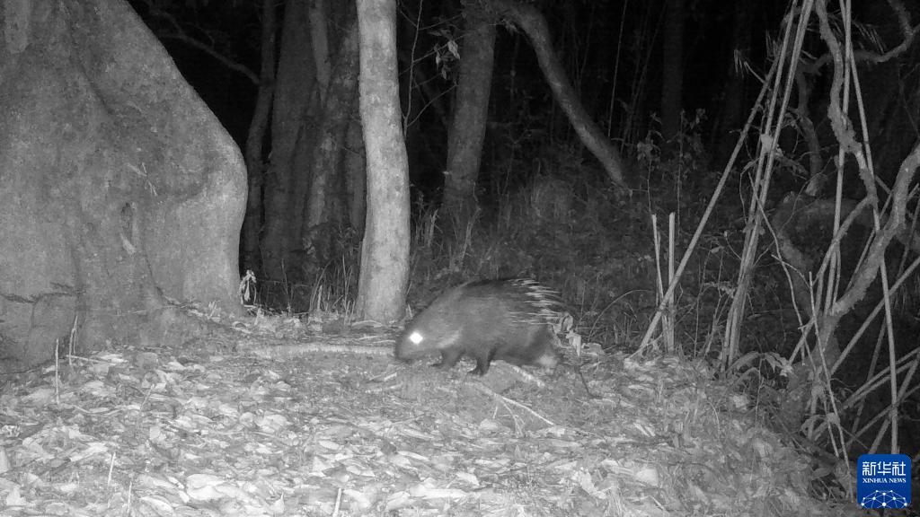 這是在高黎貢山國家級自然保護區用紅外相機拍攝到的豪豬(2022年3月25日攝)。