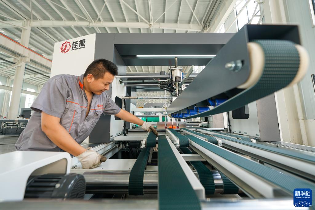 7月13日,河北省玉田縣一家印刷包裝機械制造企業(yè)的工人在調試產(chǎn)品。