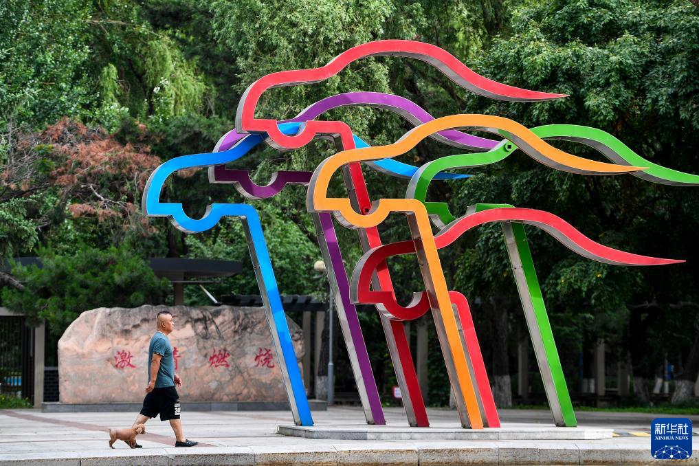 市民從長(cháng)春市一處汽車(chē)主題裝飾前經(jīng)過(guò)(7月6日攝)。