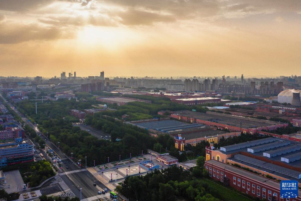 無(wú)人機拍攝的晨曦中的一汽老廠(chǎng)區景象(7月6日攝)。