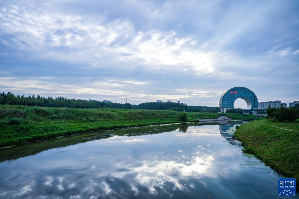 這是7月13日拍攝的晨曦中的一汽紅旗創(chuàng )新大廈。