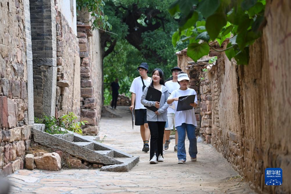 山西工學(xué)院的學(xué)生們在左權縣西安村參觀(guān)(7月12日攝)。