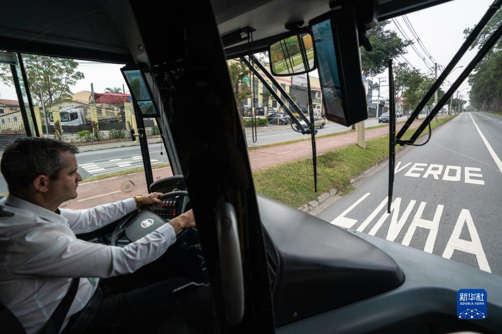 7月12日,在巴西圣保羅州圣若澤杜斯坎普斯,司機駕駛比亞迪純電動(dòng)大巴在該市快速公交系統“綠線(xiàn)”上行駛。