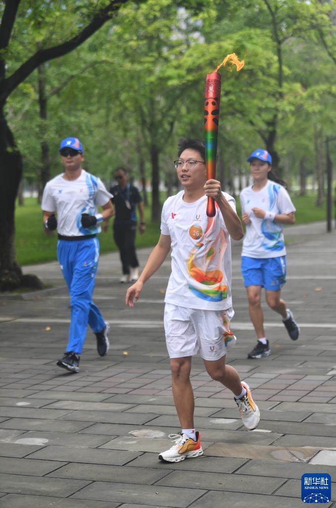 當日,成都第31屆世界大學(xué)生夏季運動(dòng)會(huì )火炬傳遞在西南財經(jīng)大學(xué)(柳林校區)校園內舉行。
