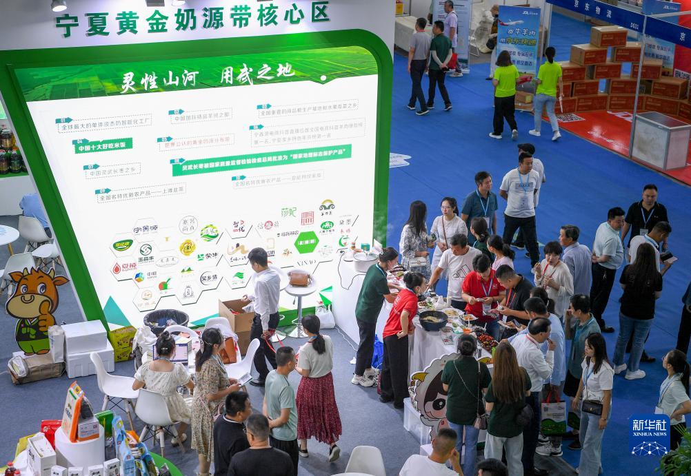 7月14日,采購商、參觀(guān)者在博覽會(huì )現場(chǎng)了解、品嘗展出的食品。