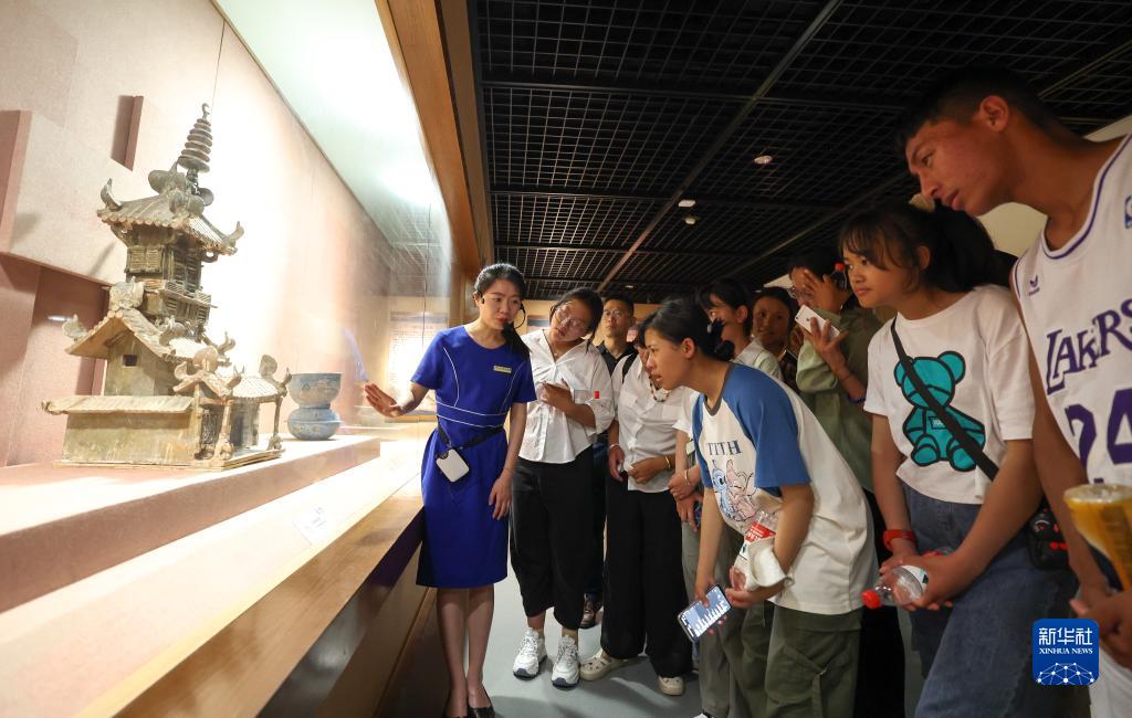 7月14日,在湖北省襄陽(yáng)市博物館,來(lái)自西藏山南市瓊結縣的手拉手夏令營(yíng)的學(xué)生們跟隨講解員參觀(guān)。
