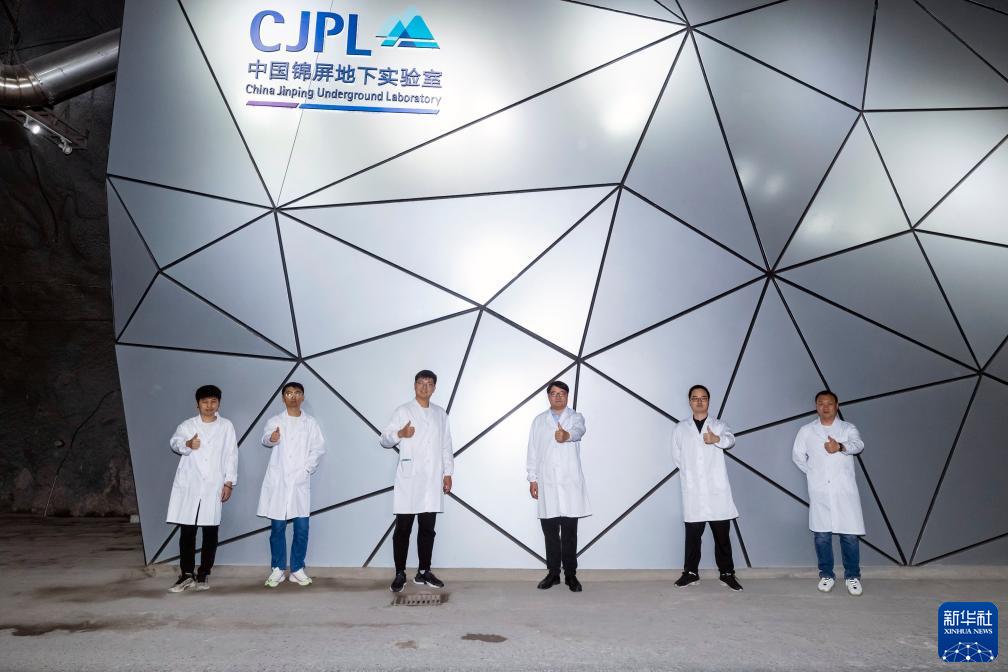 這是7月3日在位于錦屏山隧道的中國錦屏地下實(shí)驗室一期外拍攝的中國暗物質(zhì)實(shí)驗(CDEX)合作組成員梁藝帆、景明坤、王鈺鋒、楊麗桃、聶奇緣、尹箐浩(從左至右)。