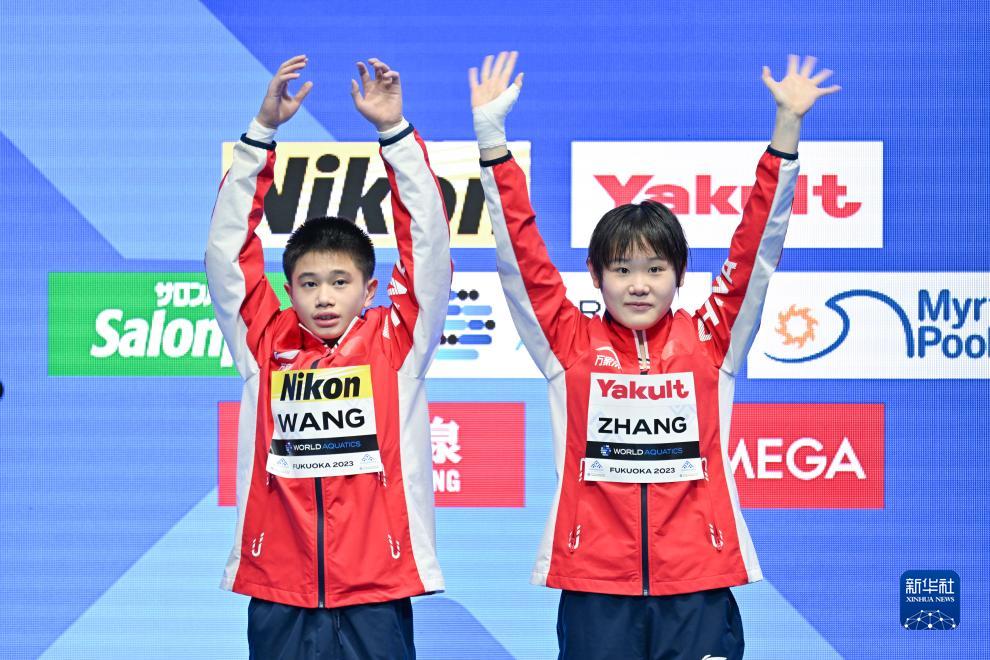 當日,在2023年福岡世界游泳錦標賽跳水混雙10米臺決賽中,中國組合王飛龍/張家齊以總分339.54分的成績(jì)奪得冠軍。