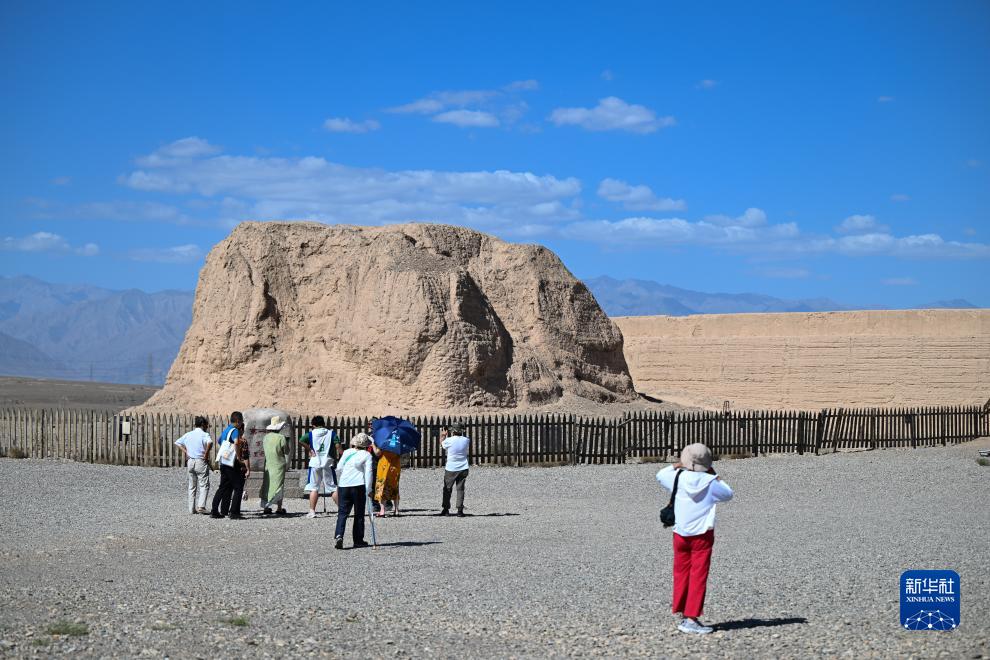 游客在甘肅省嘉峪關(guān)市參觀(guān)長(cháng)城第一墩(7月14日攝)。