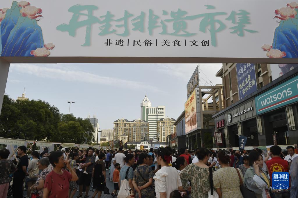 7月14日傍晚在開(kāi)封市開(kāi)元廣場(chǎng)拍攝的“非遺市集”現場(chǎng)。
