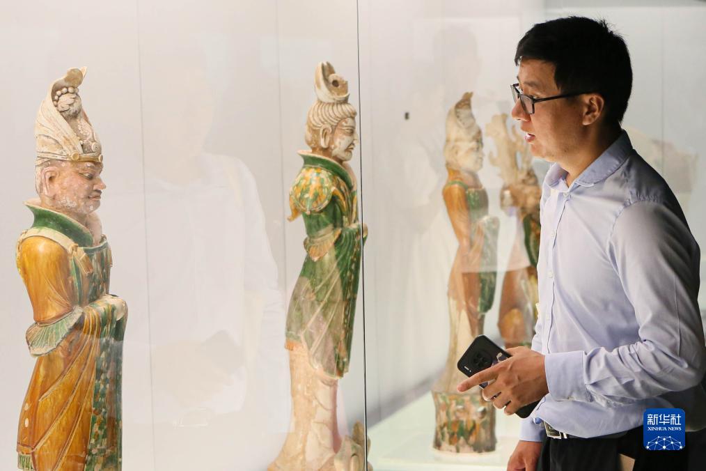 7月14日晚,參觀(guān)者在上海博物館的中國古代陶瓷館觀(guān)看展品。