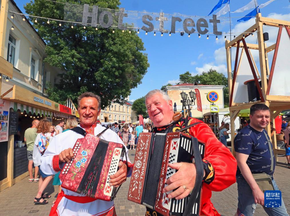 7月14日,演員在白俄羅斯維捷布斯克“斯拉夫巴扎”國際藝術(shù)節上演奏。