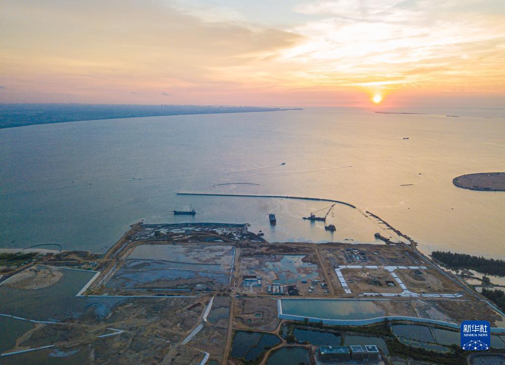 7月14日拍攝的建設中的文昌鋪前中心漁港項目(無(wú)人機照片)。