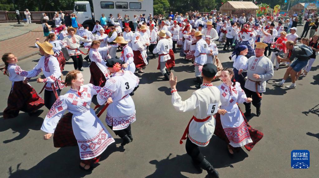 當日,一場(chǎng)民族舞蹈比賽在白俄羅斯維捷布斯克舉行。新華社發(fā)(任科夫攝)