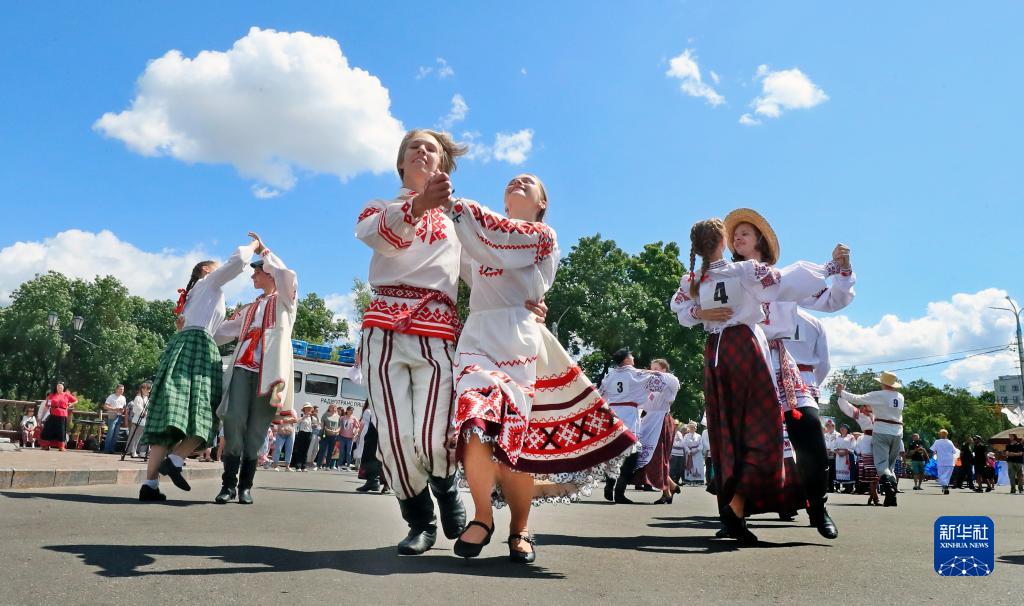 當日,一場(chǎng)民族舞蹈比賽在白俄羅斯維捷布斯克舉行。新華社發(fā)(任科夫攝)
