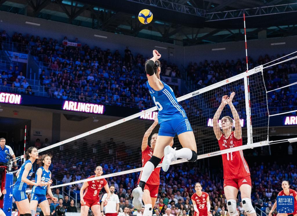 當日,在美國阿靈頓舉行的世界女排聯(lián)賽總決賽半決賽中,中國隊以3比0戰勝波蘭隊,晉級決賽。