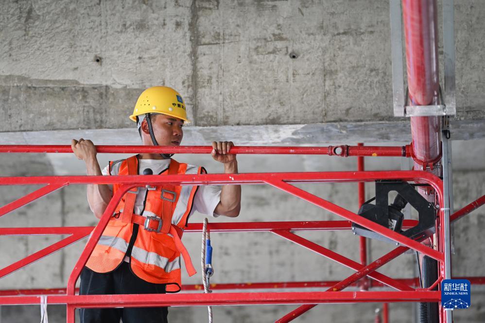 7月15日,工人在海南文昌國際航天城遙感衛星項目施工。