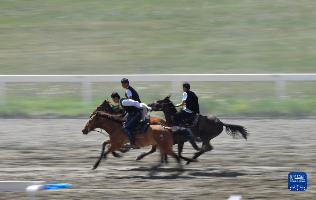 7月16日,牧民在開(kāi)幕式上表演“叼羊”。