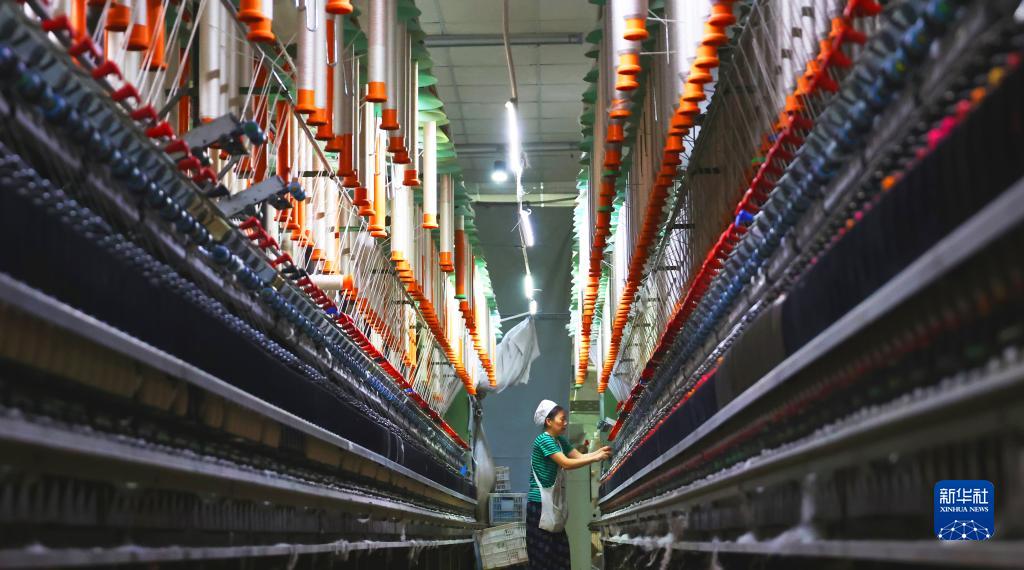 7月17日,在江蘇省連云港市海州區一家紡織企業(yè),工人在生產(chǎn)線(xiàn)上忙碌。