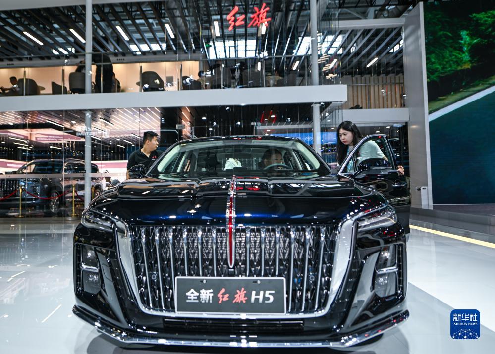 7月17日,觀(guān)眾在長(cháng)春汽博會(huì )紅旗品牌汽車(chē)展區參觀(guān)紅旗H5車(chē)型。