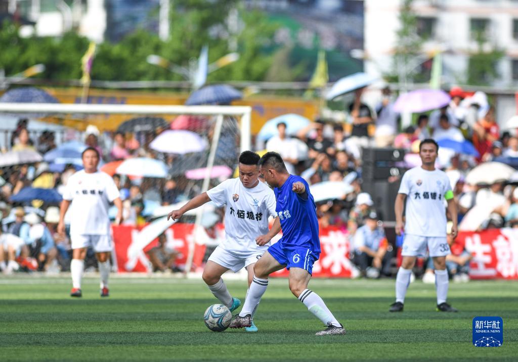 在今年的貴州省榕江縣“村超”足球比賽中,20支參賽隊的球員來(lái)自各行各業(yè),有建筑工人、有賣(mài)菜小販、有燒烤攤老板、有室內裝修設計師、有教師、有學(xué)生……出于對足球運動(dòng)的熱愛(ài),大家臨時(shí)組成參賽隊。穿上球衣,他們是為榮譽(yù)而戰的足球隊員;脫下球衣,他們是為生活奔忙的普通人。雖然很多人已步入中年,但他們仍在綠蔭場(chǎng)上奮力奔跑,不知疲倦。