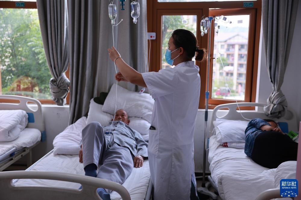 柏楊林街道社區衛生服務(wù)中心,醫護人員為患者治療(7月13日攝)。