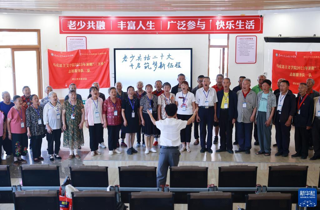 柏楊林街道長(cháng)幼日間托養照料中心,老年人在練習唱歌(7月13日攝)。
